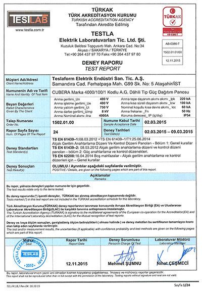 CUBERA IEC 61439-1, 2 SERTİFİKASI