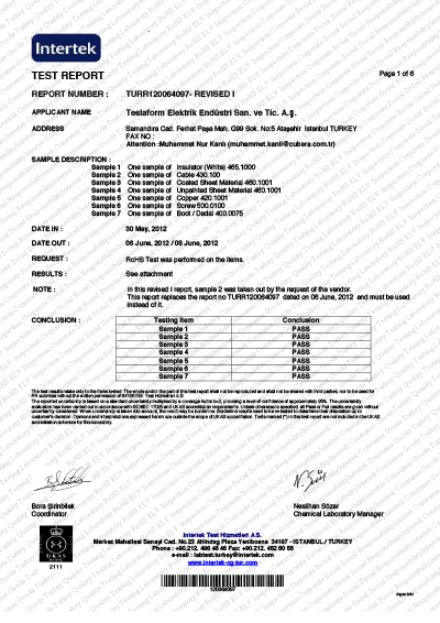 SERTİFİKALAR VE TEKNİK DEĞERLER