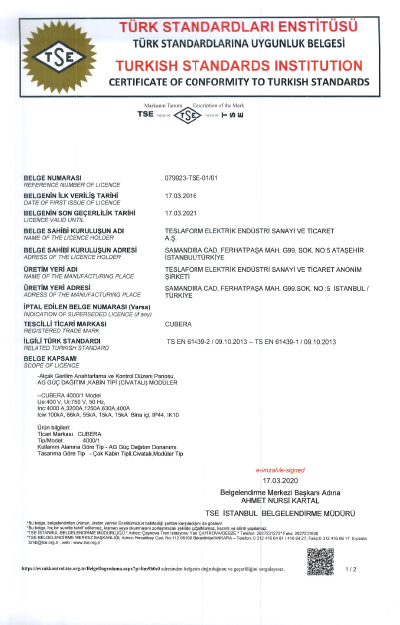 SERTİFİKALAR VE TEKNİK DEĞERLER